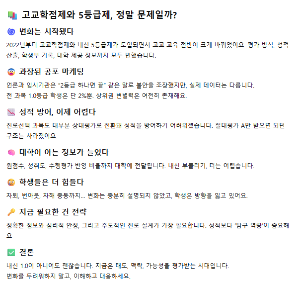 🌱 고교학점제와 5등급제는 ‘위기’가 아닌 ‘기회’