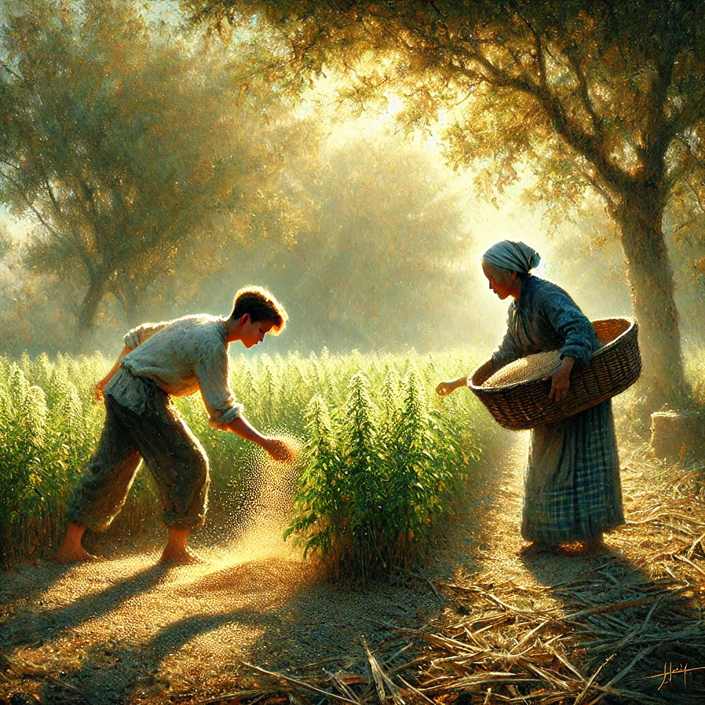 → 할머니와 화자가 함께 참깨를 턴다.